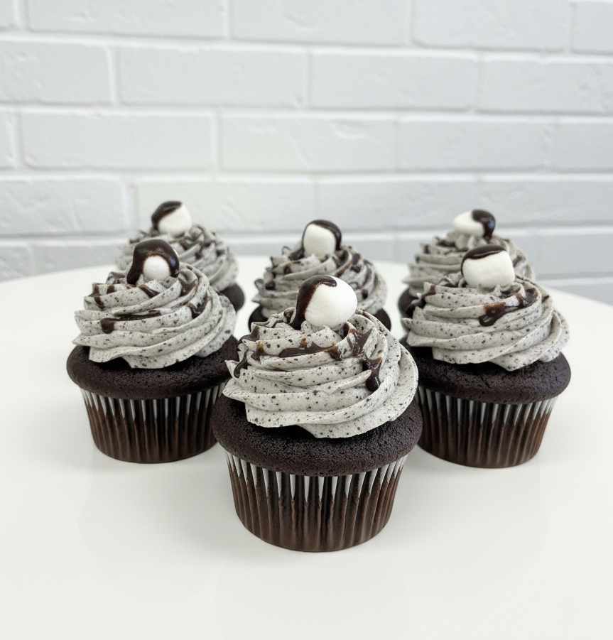 Indulge in our signature Oreo cupcakes, meticulously crafted with a rich chocolate base that's completely nut-free. Each cupcake features a generous layer of creamy Oreo buttercream, complemented by a delicate dollop of smooth vanilla buttercream. The showstopper? A luxurious cascade of hard chocolate dripping down the sides, adding both visual elegance and an extra layer of chocolate decadence.