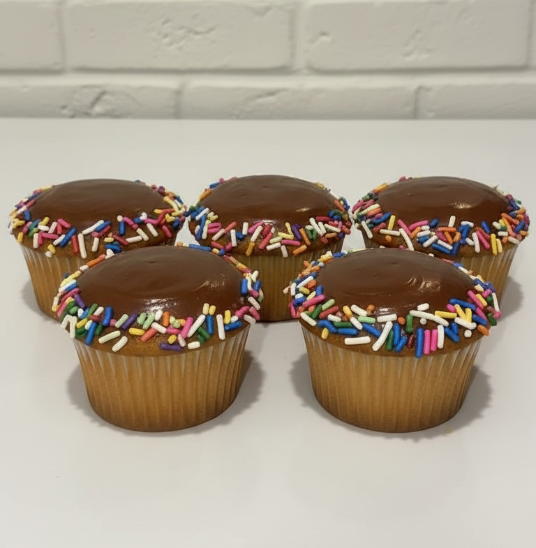 Indulge in our expertly crafted vanilla cupcakes, thoughtfully formulated to be both dairy-free and nut-free. Each of the six cupcakes features a tender, moist vanilla cake base paired with rich chocolate hard icing and vibrant rainbow sprinkles for a delightful visual appeal. Perfect for those with dietary restrictions who refuse to compromise on taste or quality.